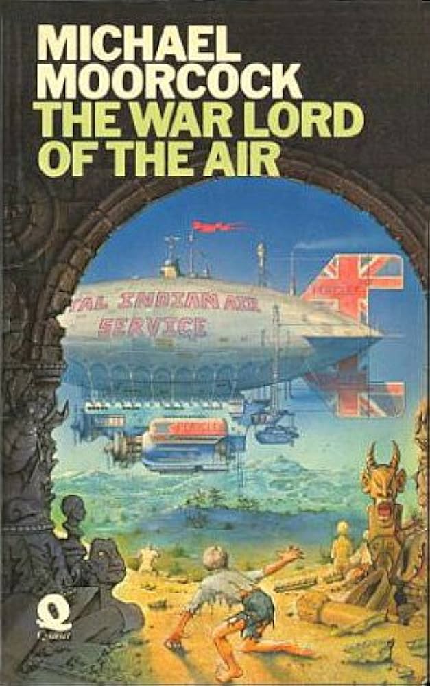 I suppose one could make a lot of comparisons between Michael Moorcock and Alan Moore. Bushy bearded British men, who are prolific authors and have produced genre defying and defining works over decades, leaving a major influence on their respective fields. And both, perhaps, a bit high on their own farts. Both men not only catalyzed and expanded on genre for those who came after, but were themselves deeply affected by what came before. I mention that, because the tone and content of The Warlord of the Air reminded me a great deal of Moore’s work, including but not limited to his League of Extraordinary Gentlemen series. Like the latter work, The Warlord of the Air is clearly inspired by a lot of Science Fiction and Boy’s Own adventure stories of the turn of the 20th Century. Both postulate semi-fanciful alternate timelines and populate them with various famous figures, remixed into somewhat satirized versions of themselves. Though Moorcock’s book keeps the focus mostly on real life figures for his new takes, the overall feel is similar.