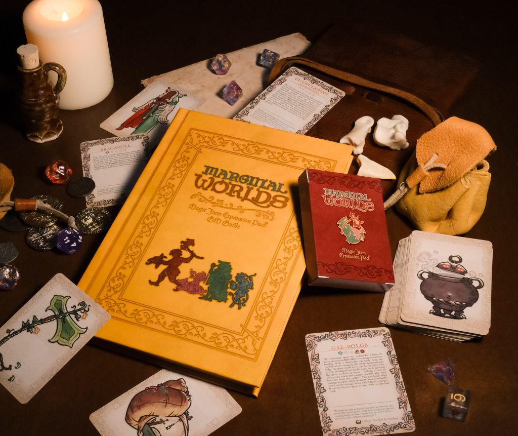 Created by Medieval historians and podcasters Mac Boyle and Zoe Franznick, Marginal Worlds is a set of fifty cards, with a guide book to accompany them. Though generally system neutral, some items do have D&D 5e stats provided in an appendix.