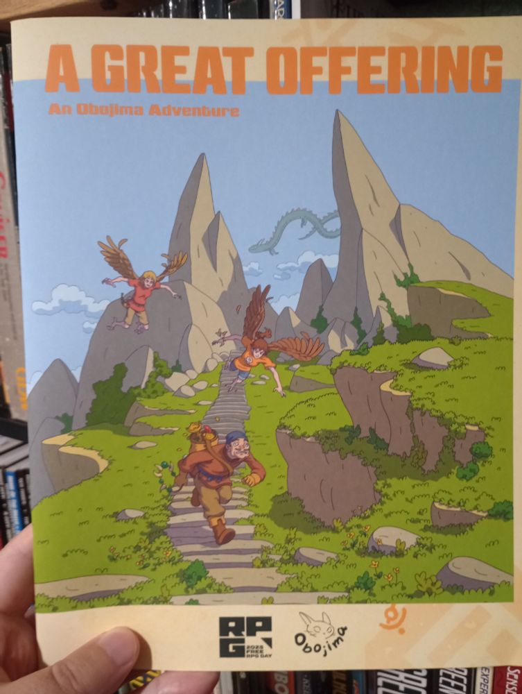 I picked this adventure up on Free RPG Day 2025. It’s for the Obojima setting for D&D 5e, which takes a great deal of inspiration from various anime, manga, and Japanese RPG video games, especially from the 1980s, especially from Miyazaki. I haven’t read the Obojima book (is it out yet?), so I’m not really familiar with the setting. A few things that popped up in this adventure surprised me quite a bit, because they seemed so anachronistic. But I quickly realized the writers are going for a slightly different type of setting than I originally expected. It seems that Obojima is intended to be more on the “cozy” side of gaming. That’s not really something 5e is built to handle well, and many other systems would likely fit much better. However, I also understand financial reality. And the reality is, if you want more people to notice your stuff, you’ve got to link it with 5e.